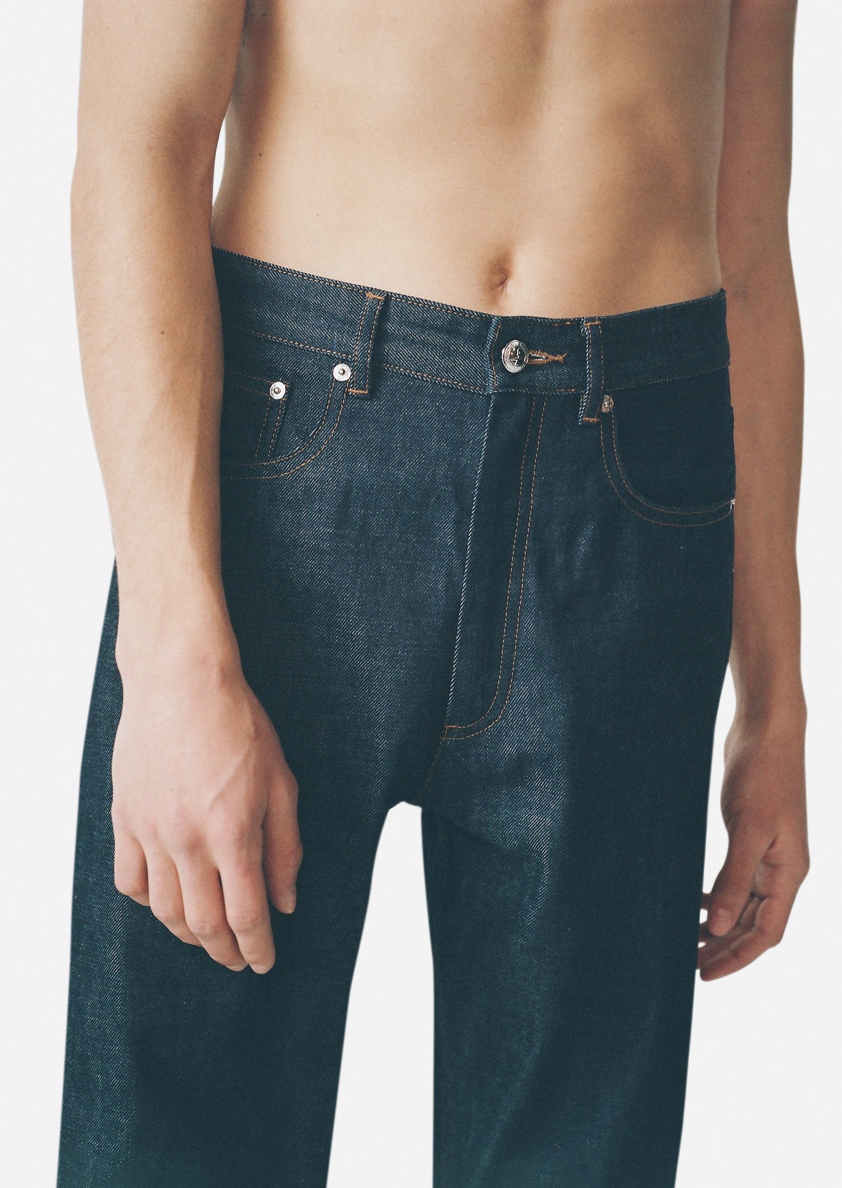 Après de longs mois d'échanges, de travail, de peaufinage, nous sommes heureux de vous présenter le résultat de notre collaboration avec la marque APC. Ce jean, très naturellement baptisé le "Jean", est exactement celui dont nous rêvions. Taille haute mais raisonnable, jambe droite et élégante, il fonctionnera aussi bien en blazer qu'en t-shirt, en mocassins qu'en baskets. Disponible en exclusivité sur Letiquette.com