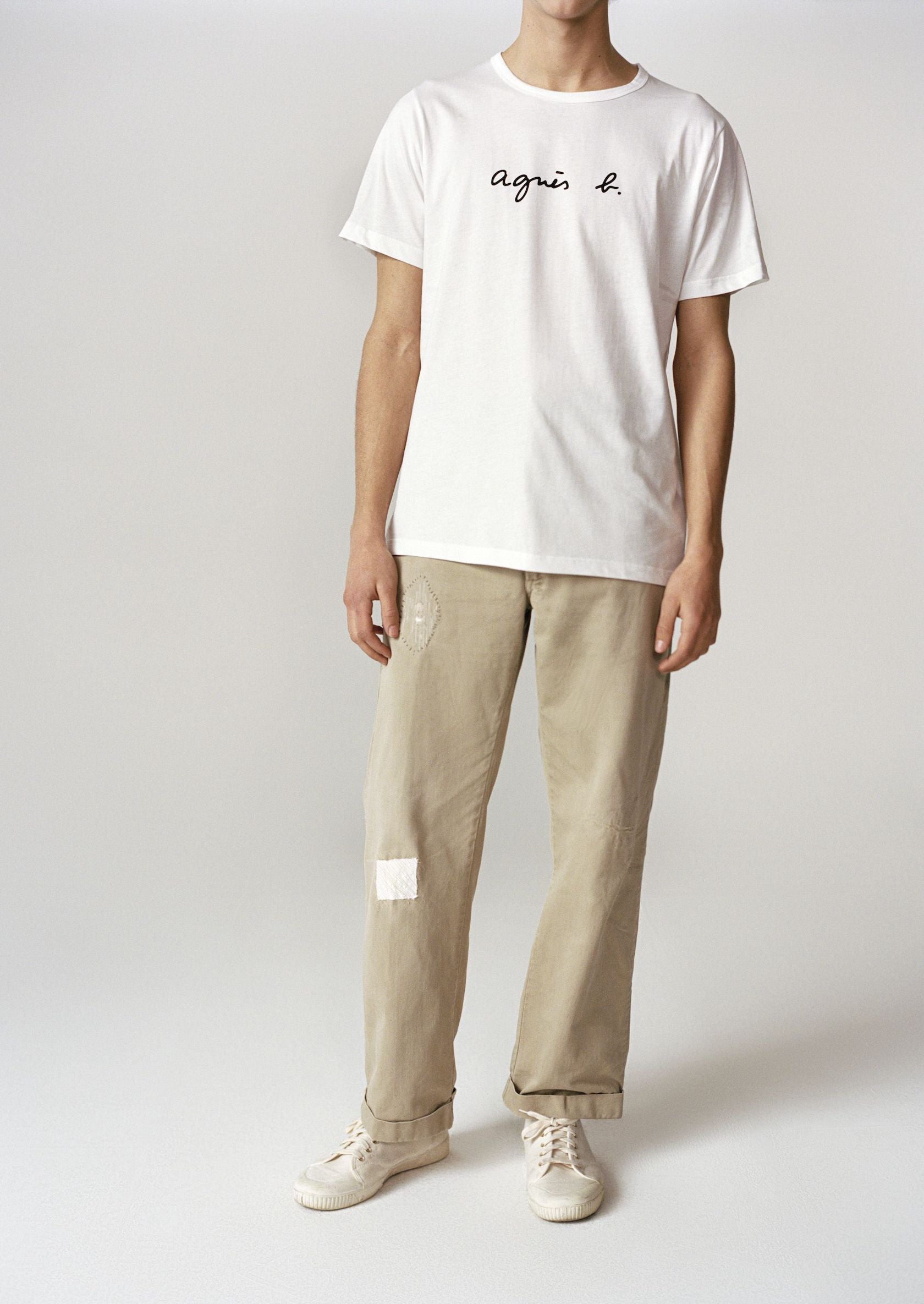 Ce t-shirt manches courtes est sérigraphié du logo ancestral de la maison agnès b., écrit à la main par Agnès elle-même en 1975.