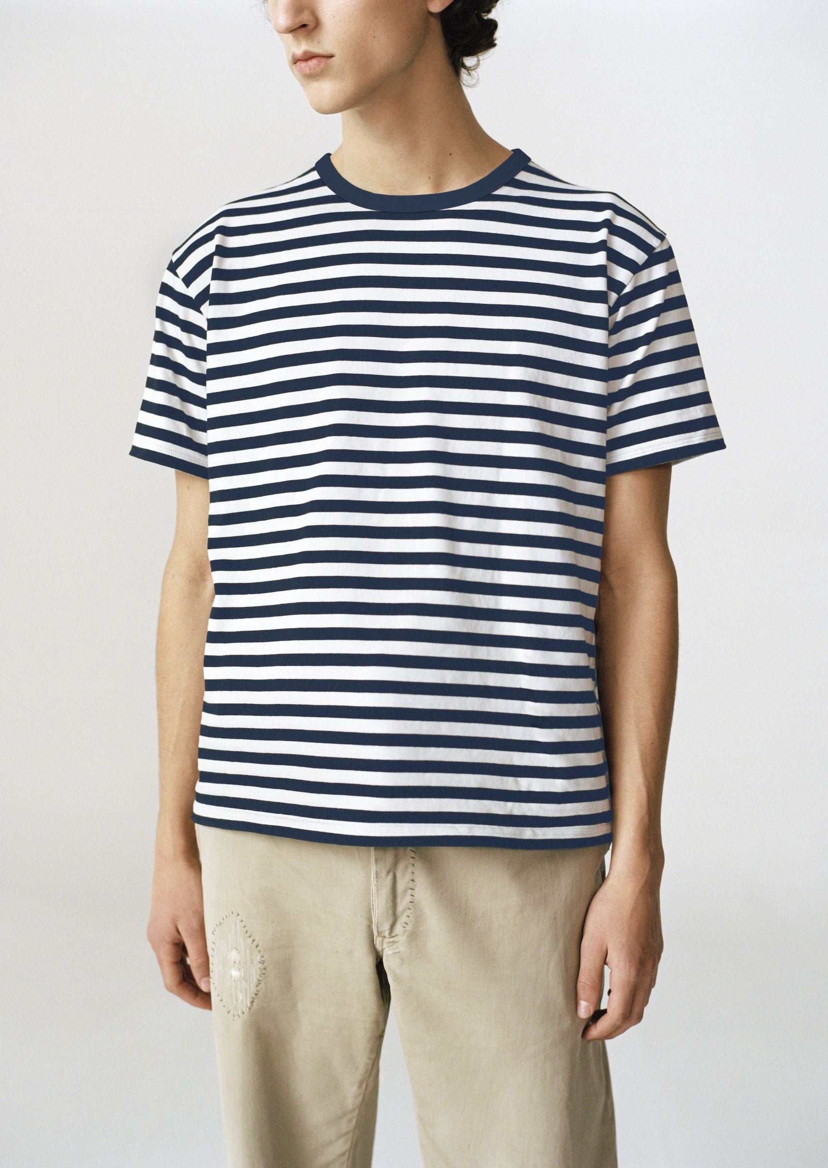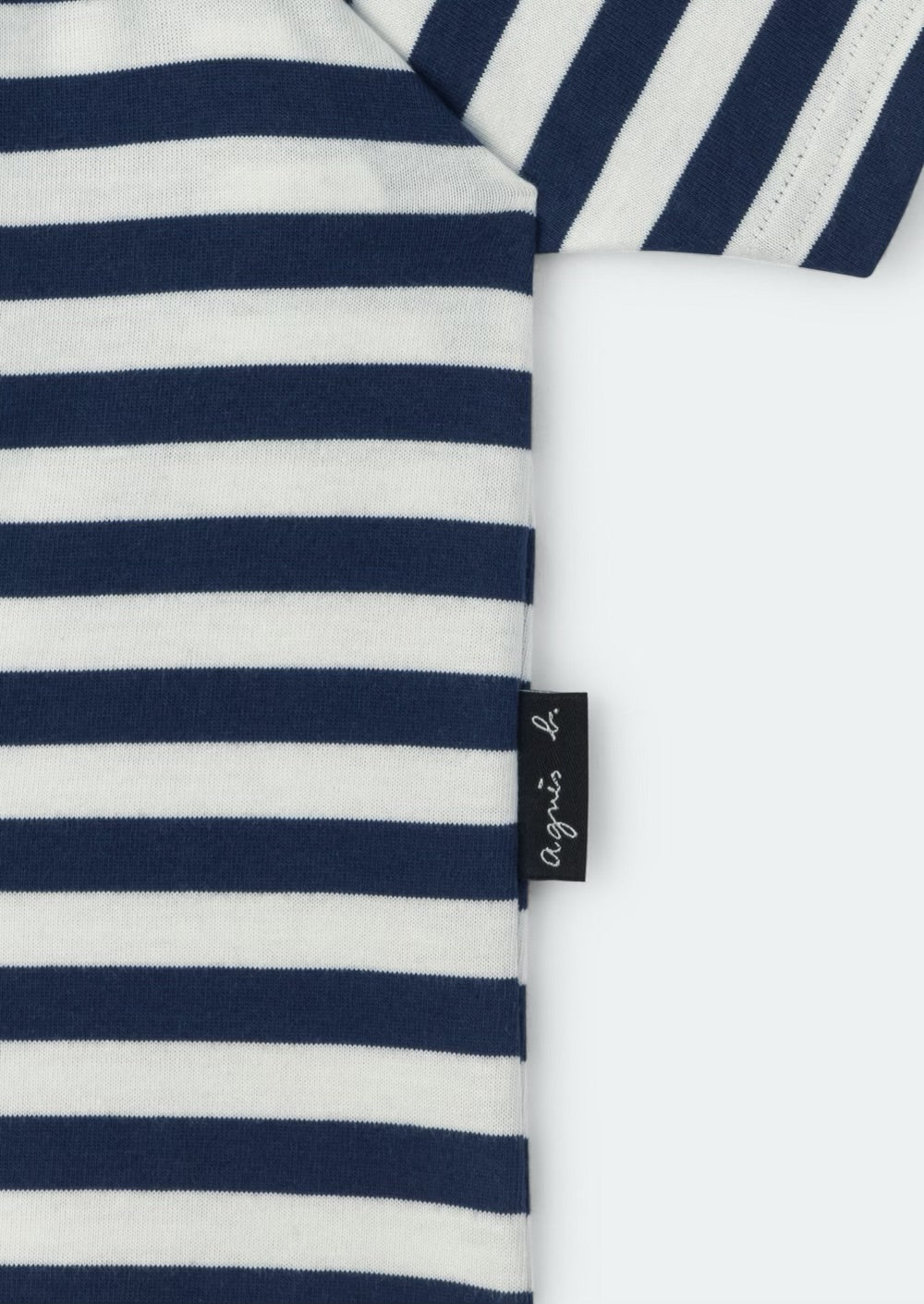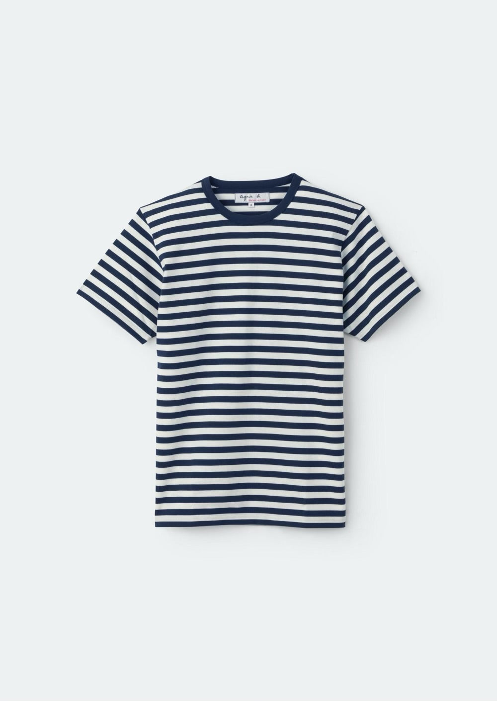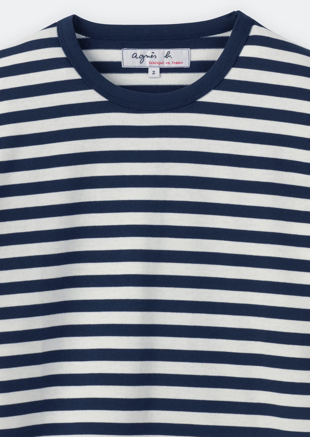 Ce t-shirt manches courtes rayé est présent dans les collections agnès b. depuis les années 1970. Il est coupé dans le fameux jersey lourd tricoté dans l'Aube qu’agnès b. utilise depuis les années 1970.