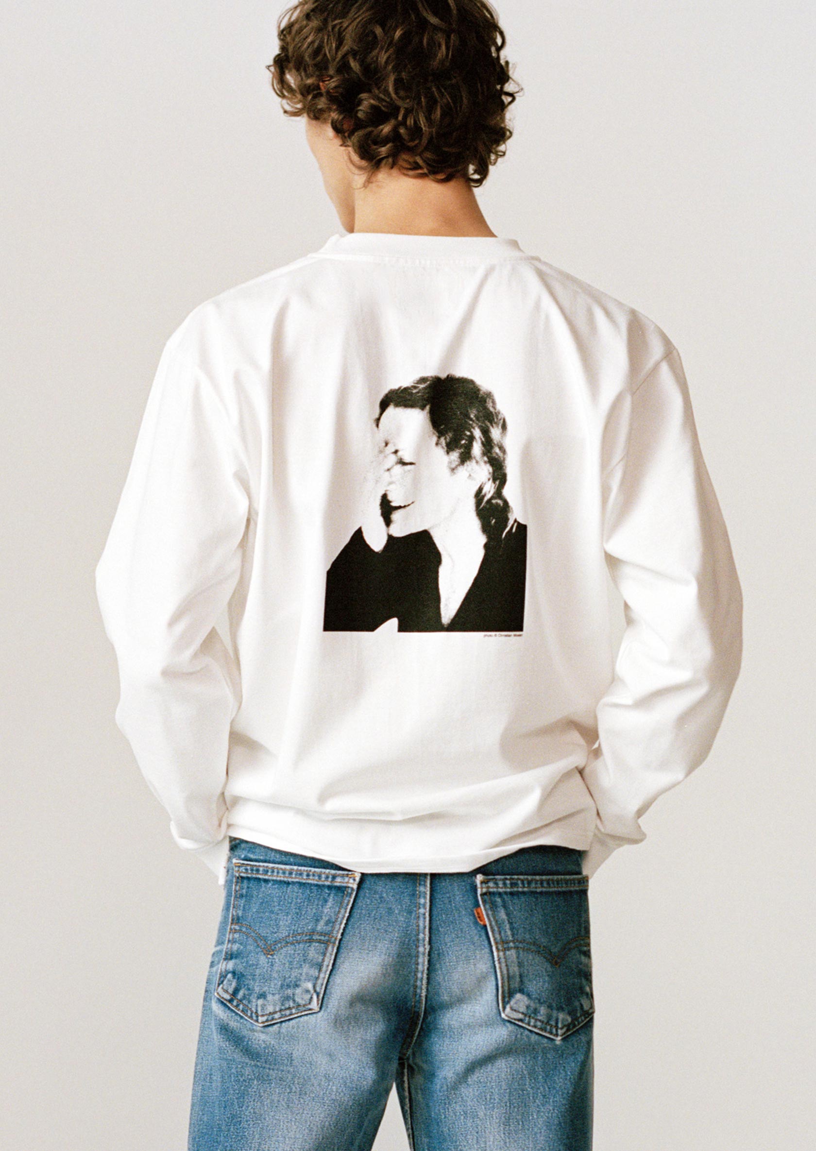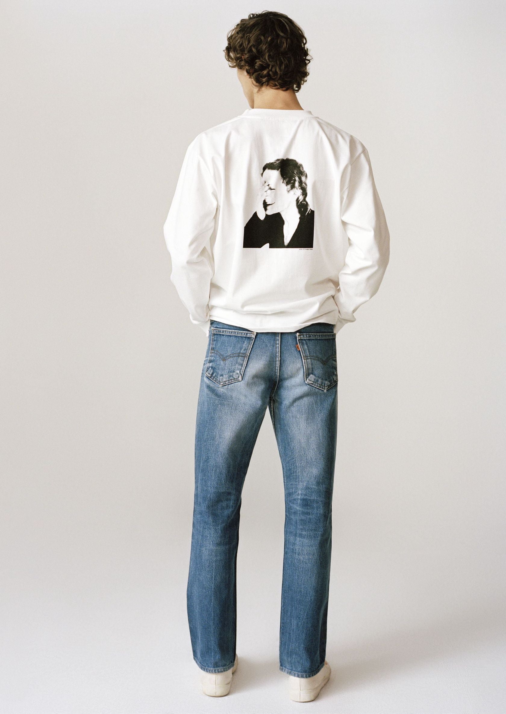 Ce t-shirt manches longues en édition limitée est coupé dans le fameux jersey lourd tricoté dans l'Aube qu’agnès b. utilise depuis les années 1970. Dans le dos, sérigraphié à Paris, un portrait d’Agnès réalisé en 1999.