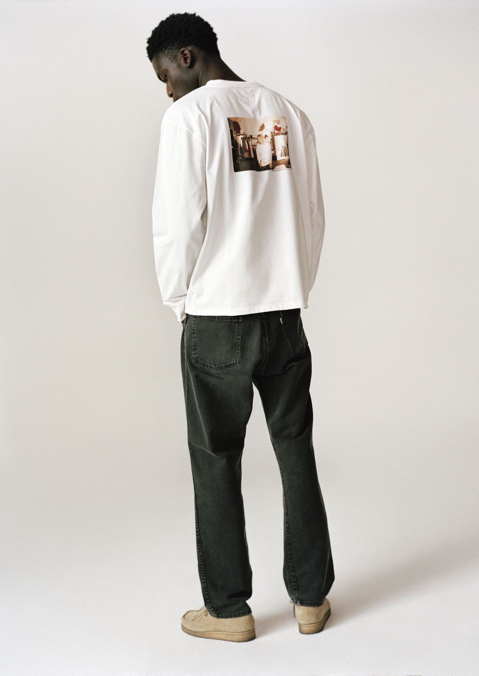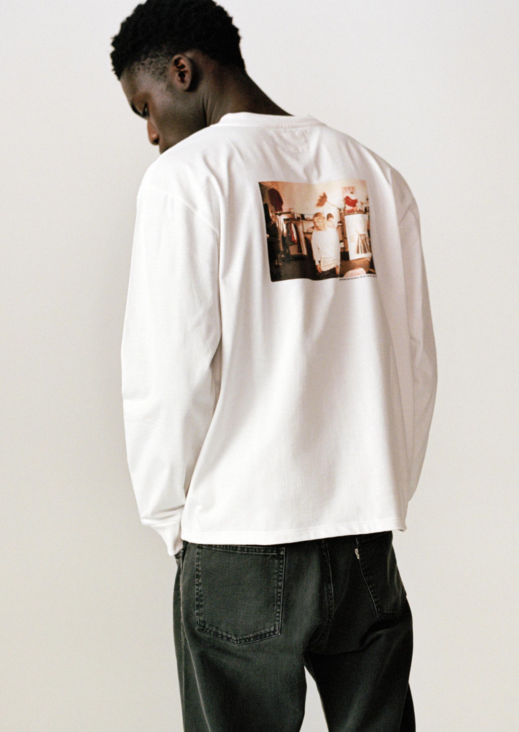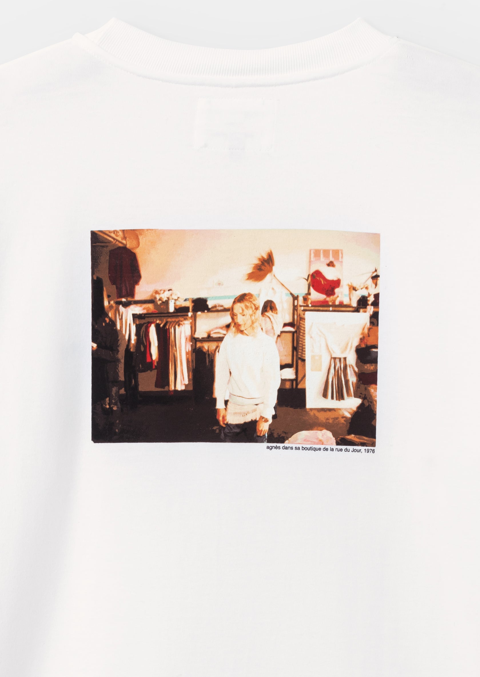 Ce t-shirt manches longues en édition limitée est coupé dans le fameux jersey lourd tricoté dans l'Aube qu’agnès b. utilise depuis les années 1970. Dans le dos, sérigraphié à Paris, un portrait d’Agnès pris en 1976 dans sa boutique historique, Rue du jour.