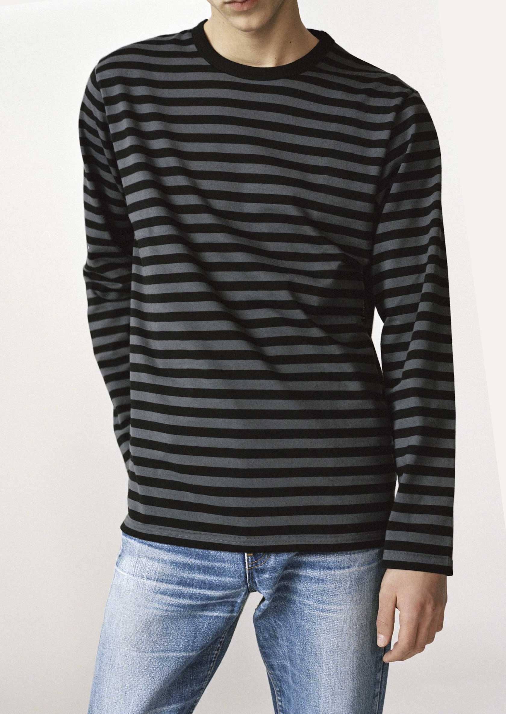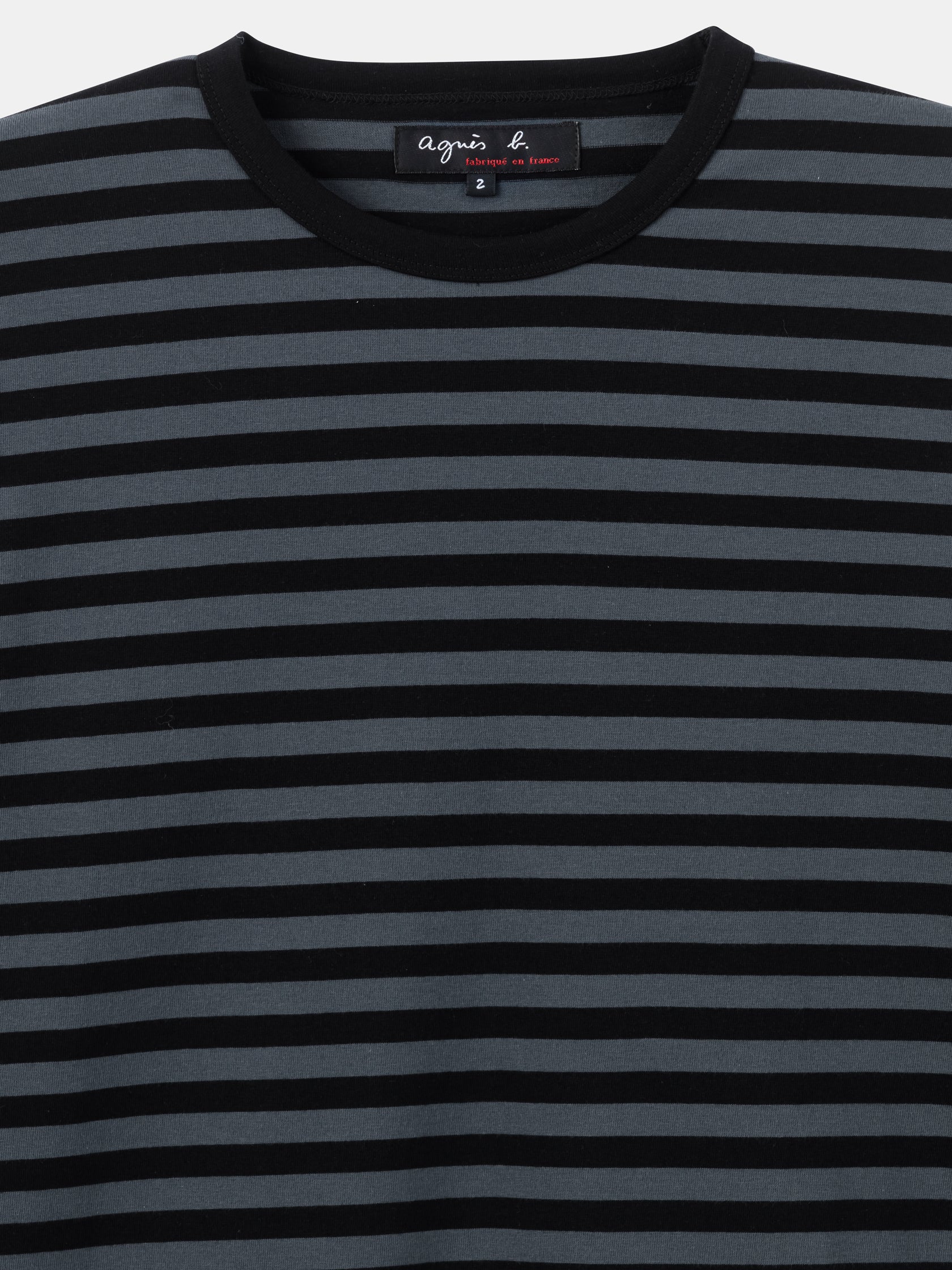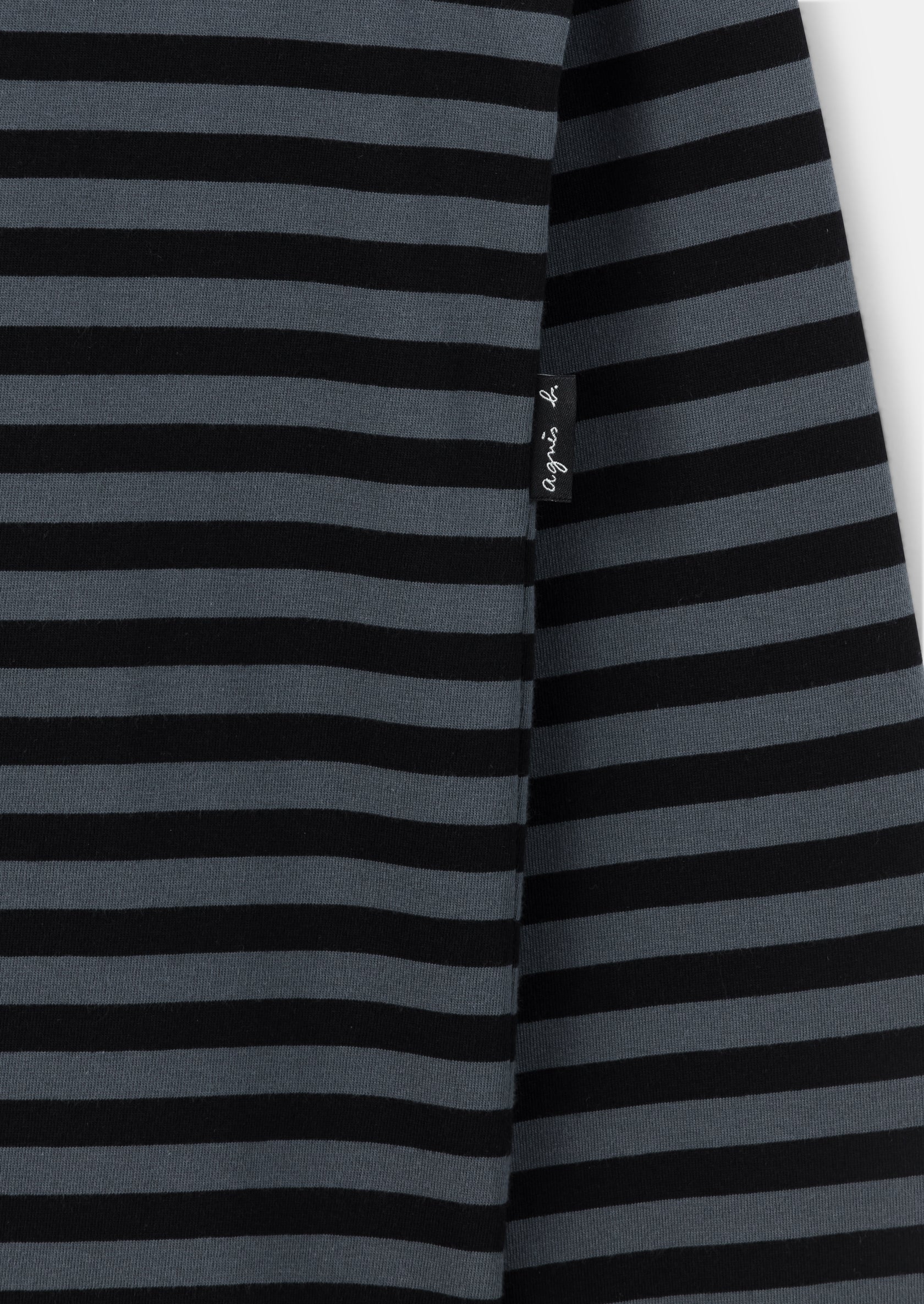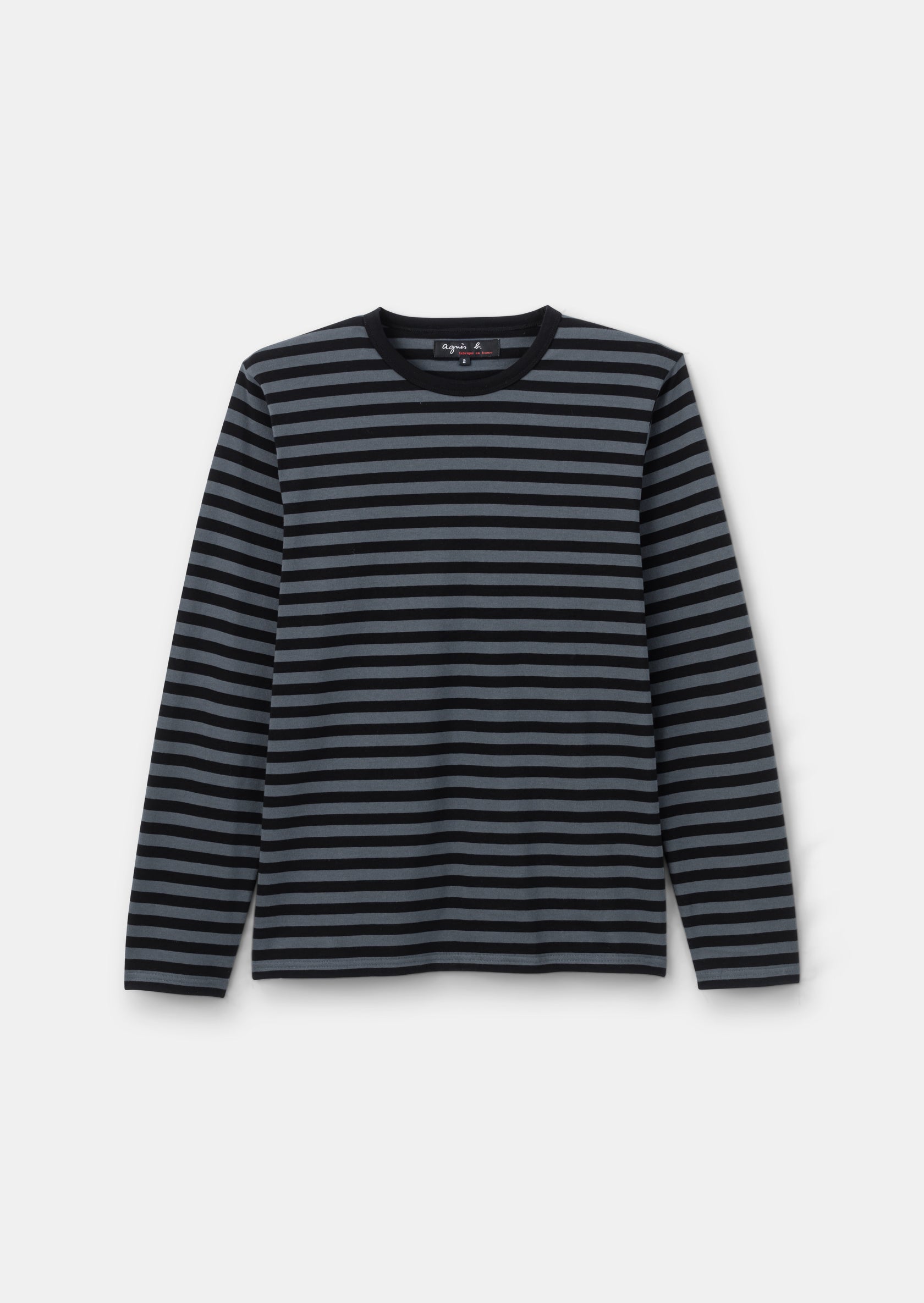 Ce t-shirt manches longues rayé est présent dans les collections agnès b. depuis les années 1970. Il est coupé dans le fameux jersey lourd tricoté dans l'Aube qu’agnès b. utilise depuis les années 1970.